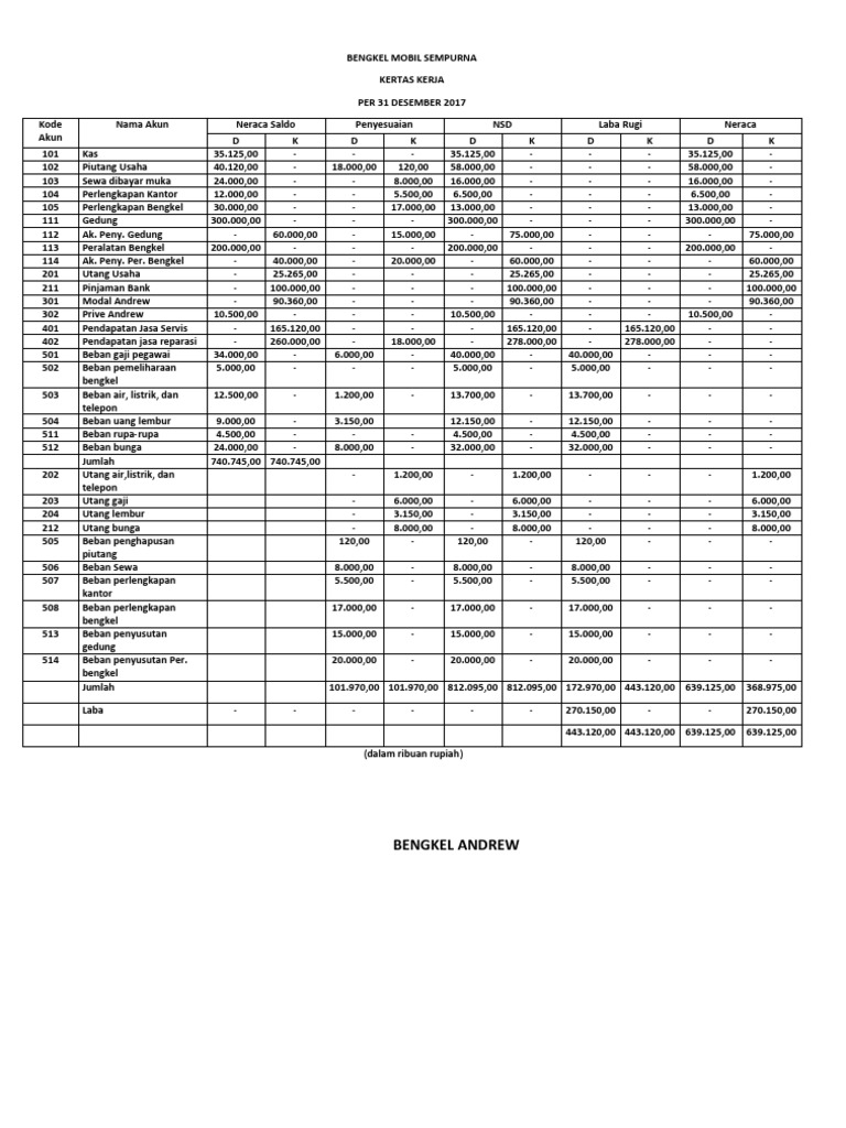 Kertas Kerja Dan Jurnal Penyesuaian Bengkel Mobil Sempurna Pdf
